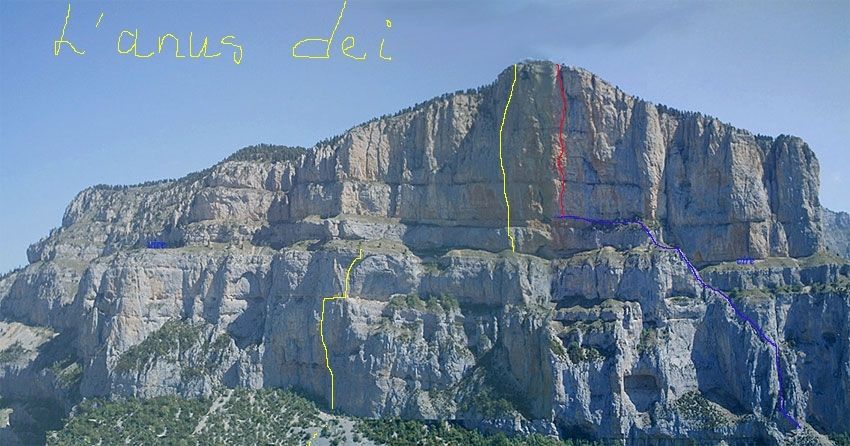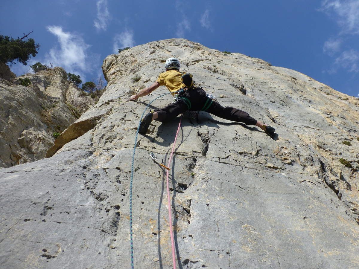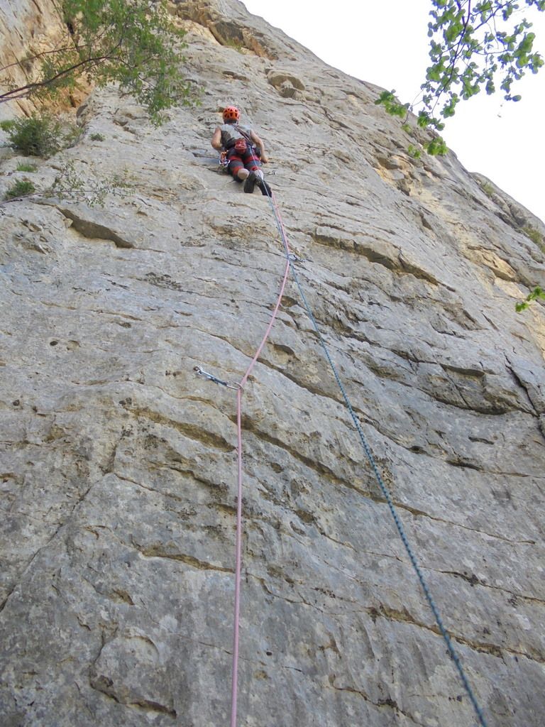 L15: 7b grande et belle longueur très technique sur petites prises. difficile à lire et à grimper. belle fin qui déroule. Bien gérer le tirage car elle traverse et louvoie beaucoup. Relais sur arbre avant le plateau.