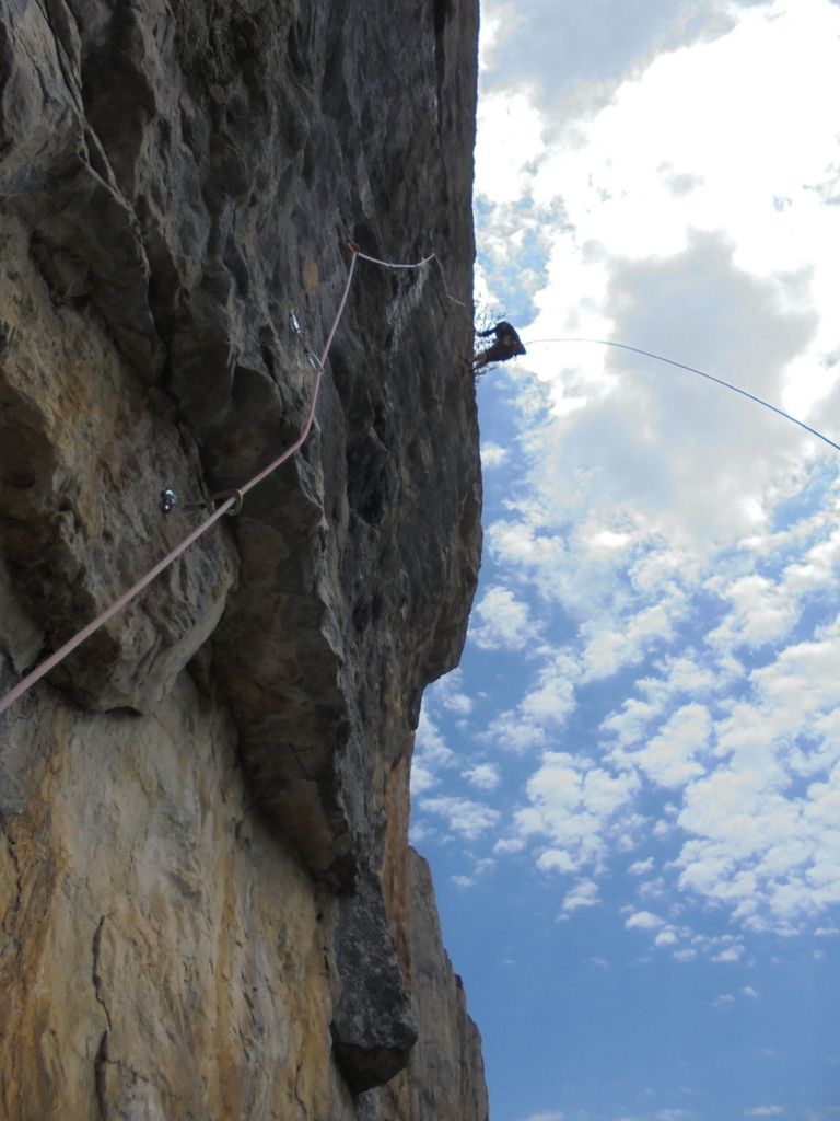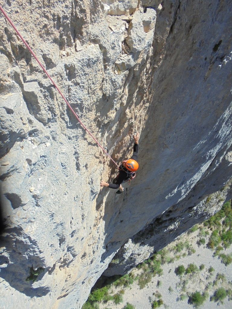 L11: 7b (un petit) grande et très belle longueur en dévers. physique sur bonnes prises puis une fin verticale à l'équipement aéré . on peut sauter un relais intermédiaire pour rejoindre la vire. bien gérer le tirage